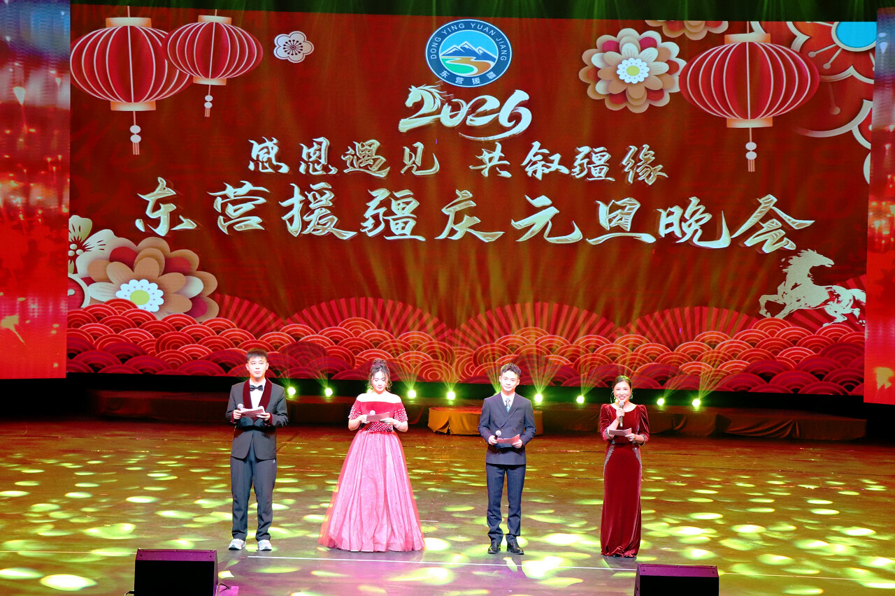 12月28日晚,疏勒县新时代文明实践中心红色演绎中心灯光璀璨,由东营援疆工作指挥部主办的“感恩遇见 共叙疆缘”2026年庆元旦晚会在此盛大举行。枣庄学院第十三批援疆实习支教团21名同学精心准备了4个精彩节目,与山东援疆干部人才、当地师生同台献艺,展现了支教大学生的青春风采,共同呈现了一场体现鲁疆教育交流、民族团结的文化盛宴。
