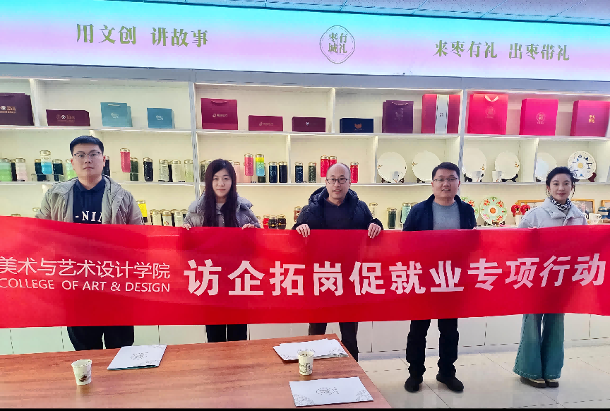 为深化产教融合、促进学生就业,推动枣庄红色文化与历史资源以文创伴手礼形式活化传承,1月27日,美术与艺术设计学院教师代表赴枣城有礼开展访企拓岗专项行动,精准对接用人单位人才需求,广泛开拓就业市场,全力促进毕业生就业。