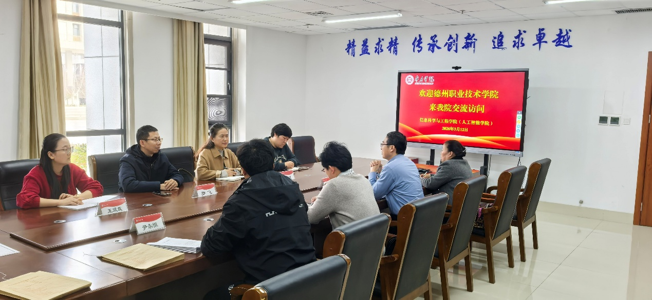 3月12日,德州职业技术学院信息工程学院院长祝谨惠一行4人来我校信息科学与工程学院(人工智能学院)就职普贯通培养合作及人才培养事宜交流访问。教务处处长、信息科学与工程学院(人工智能学院)院长杨振,副院长燕孝飞及骨干教师参加座谈。