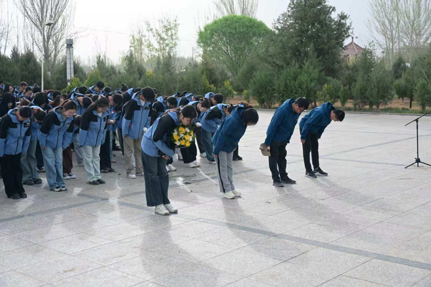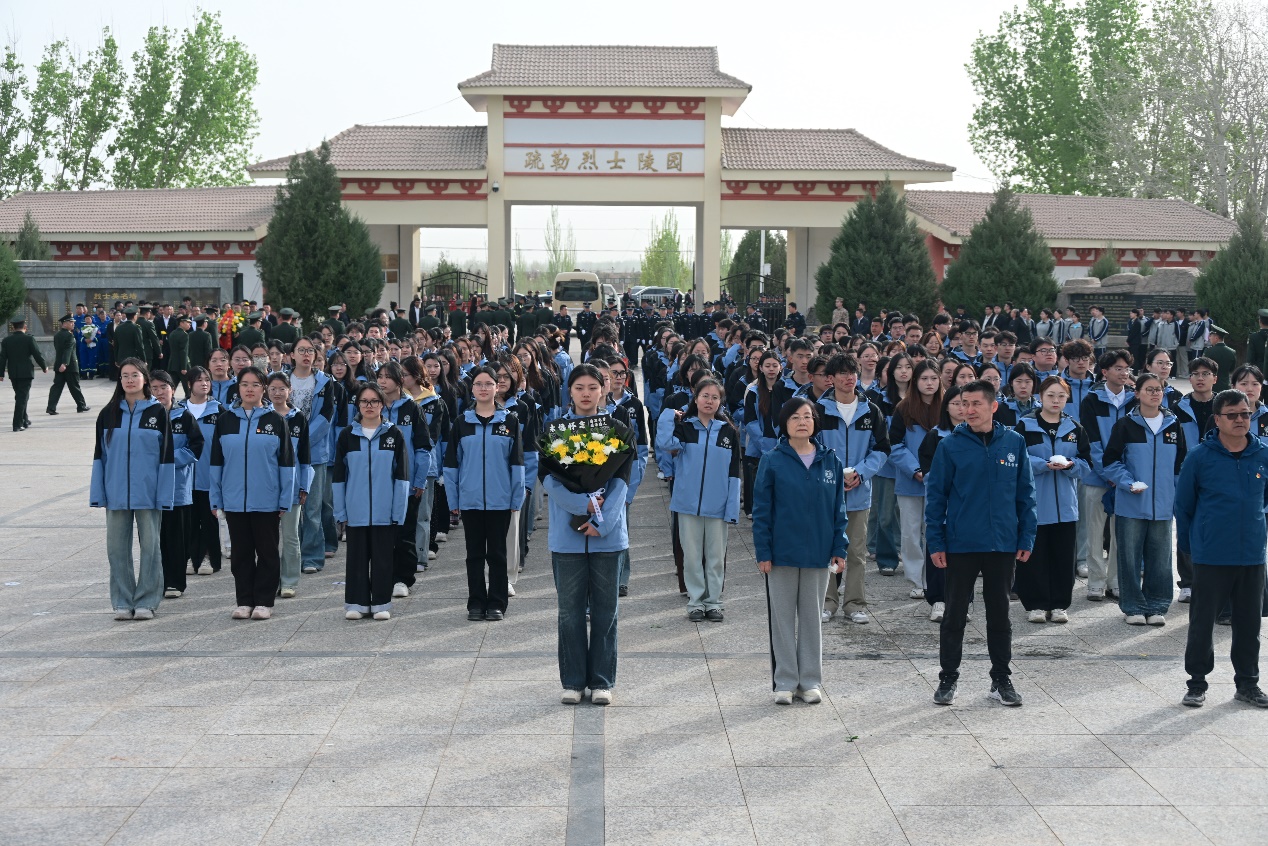 全体师生列队整齐,向英勇献身的革命先烈敬献鲜花,集体肃立默哀,深切缅怀为保卫边疆、维护民族团结和国家统一而壮烈牺牲的革命烈士,表达对先烈的崇敬与哀思。
