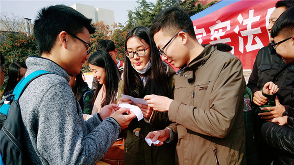 2016-12-05为迎接我国第三个国家宪法日暨第十六个全国法制宣传日,更好地向全校师生宣传普及宪法和法律知识,推动校园法治文化建设,12月1日和4日,我校政治与社会发展学院以“弘扬宪法精神,建设法治校园”为主题开展系列普法...