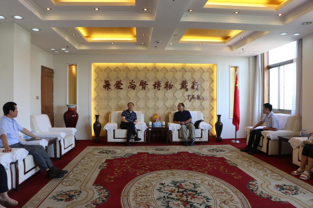2019-08-218月20日上午,烟台大学党委宣传部部长、新闻中心主任于秀国一行8人来我校考察交流,校党委书记曹胜强、副书记曾宪明在综合楼八楼接待室会见于秀国一行。曹胜强对于秀国一行表示欢迎,希望两校宣传工作加强沟通交流,...