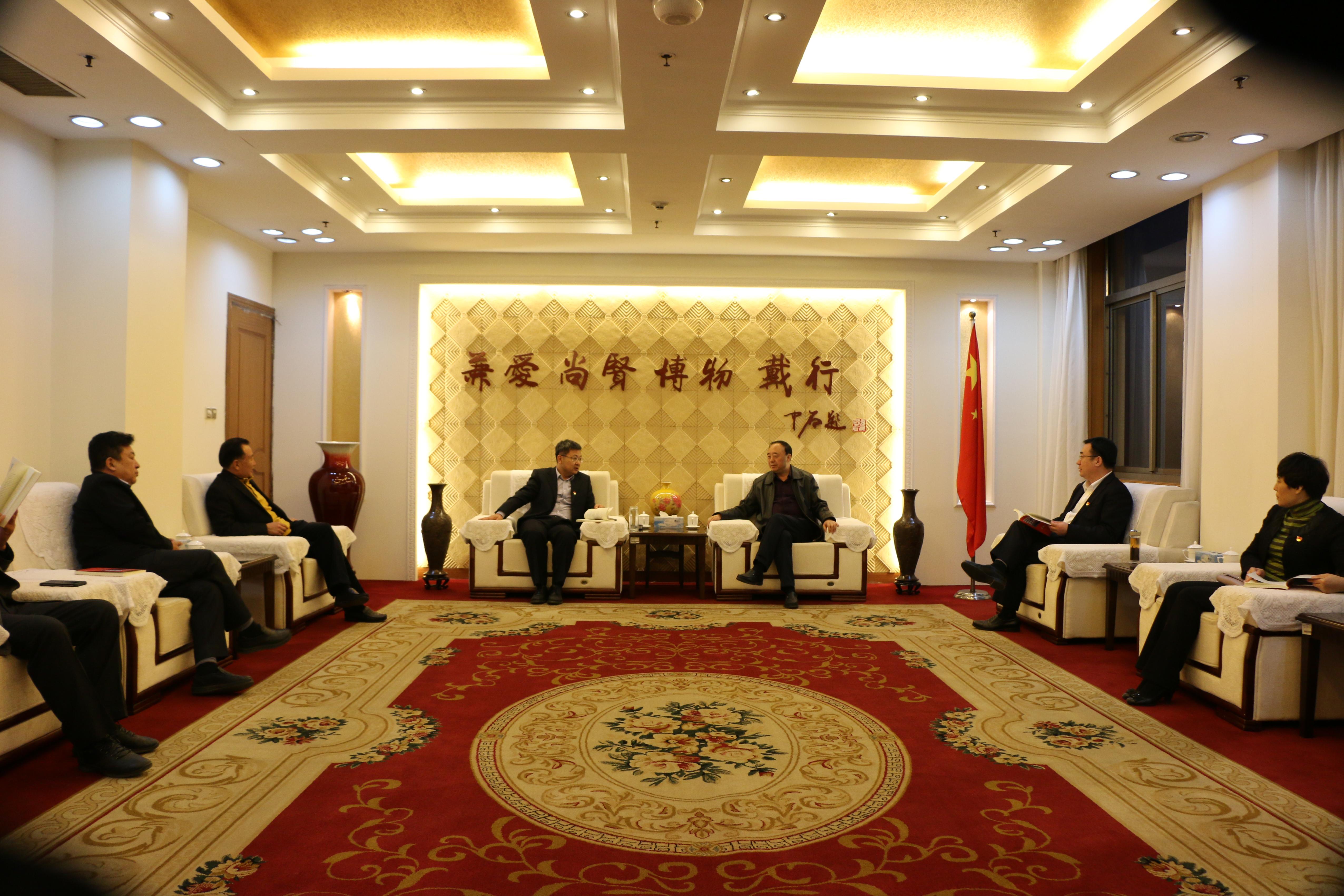 2019-11-0511月5日下午,由枣庄市委常委、宣传部长、政法委书记李爱杰陪同,烟台大学党委书记张伟等一行7人来校考察交流。校党委书记曹胜强、校长李东在综合楼八楼接待室会见张伟一行,我校办公室、宣传部等部门负责同志参与会...
