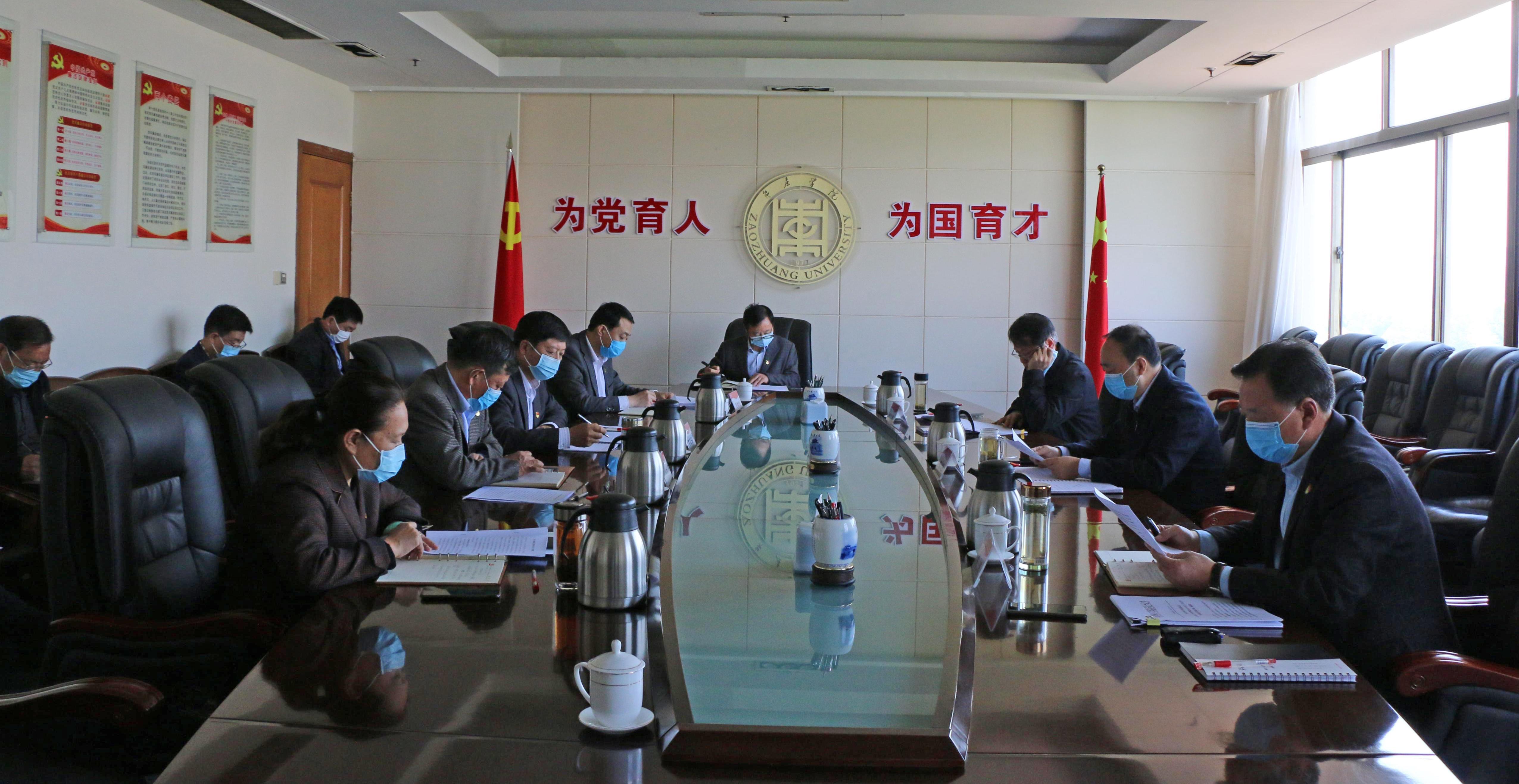 2020-04-294月29日上午,我校在综合楼三楼会议室召开2020年重点工作攻坚突破部署会议。校党委书记曹胜强讲话,校领导李东、曾宪明、明清河、李目海、李丽清、路绪剑出席会议。全校各部门、学院主要负责人参加会议。会议由校长李...